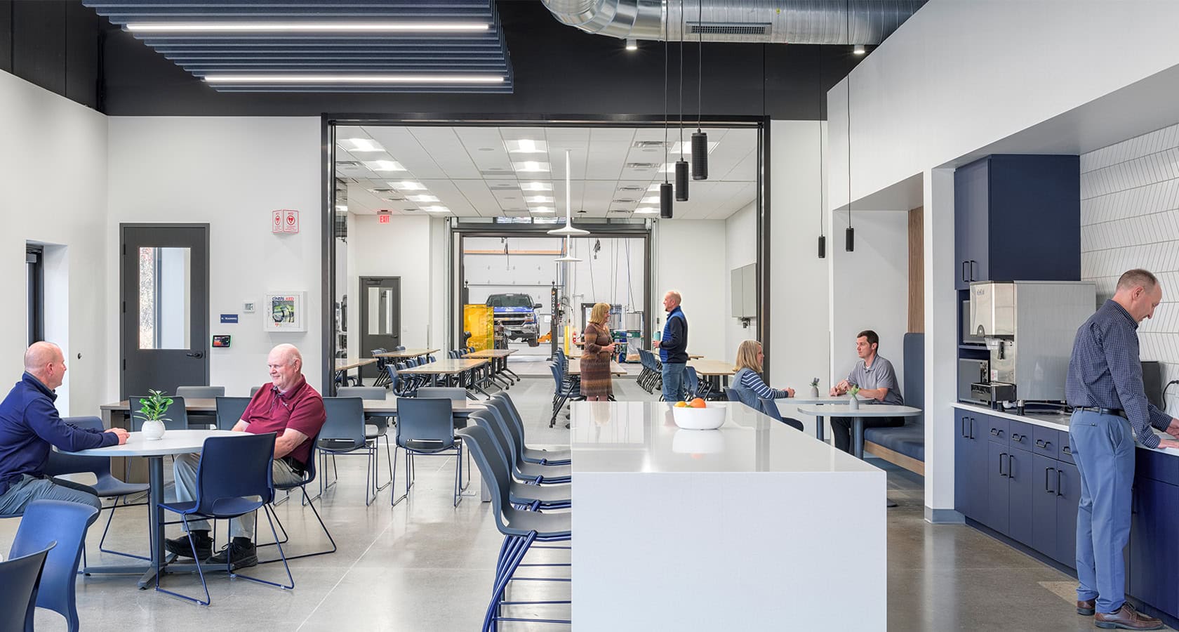 Private and open offices, adjustable workstations, focus rooms, a variety of meeting and training areas, a large flexible work cafe, and multiple collaborative zones offer the perfect balance for individual and team focused work. Strategically placed windows bring daylight to the core of the building while also enhancing visual connections between departments.